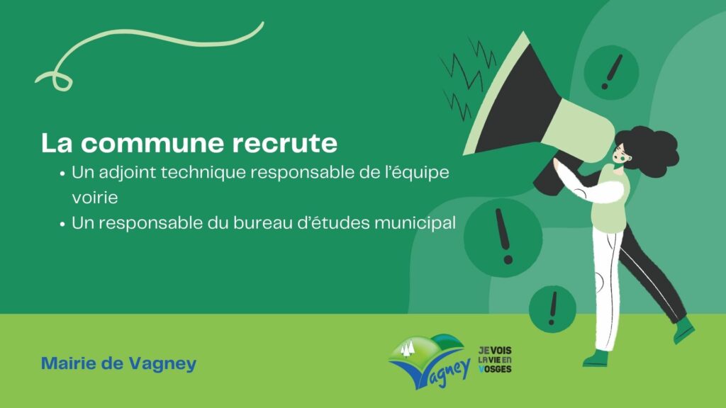 La Commune recrute : Un adjoint technique responsable de l'équipe voirie.Voir l'annonce Un responsable du bureau d'études municipalVoir l'annonce