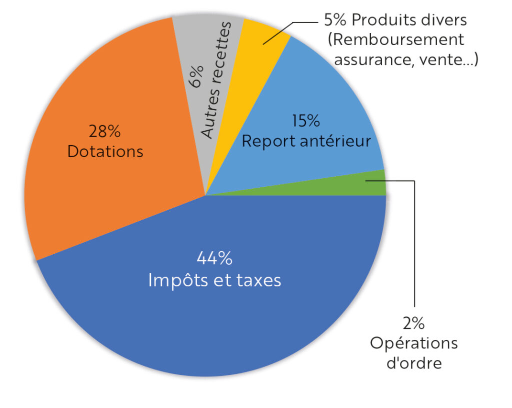 L’attribution de compensation, résultant du passage de la Communauté de Communes au régime de la fiscalité professionnelle unique (FPU) et du transfert de la cotisation foncière des entreprises, est reversée à la commune et reste stable par rapport aux années précédentes.