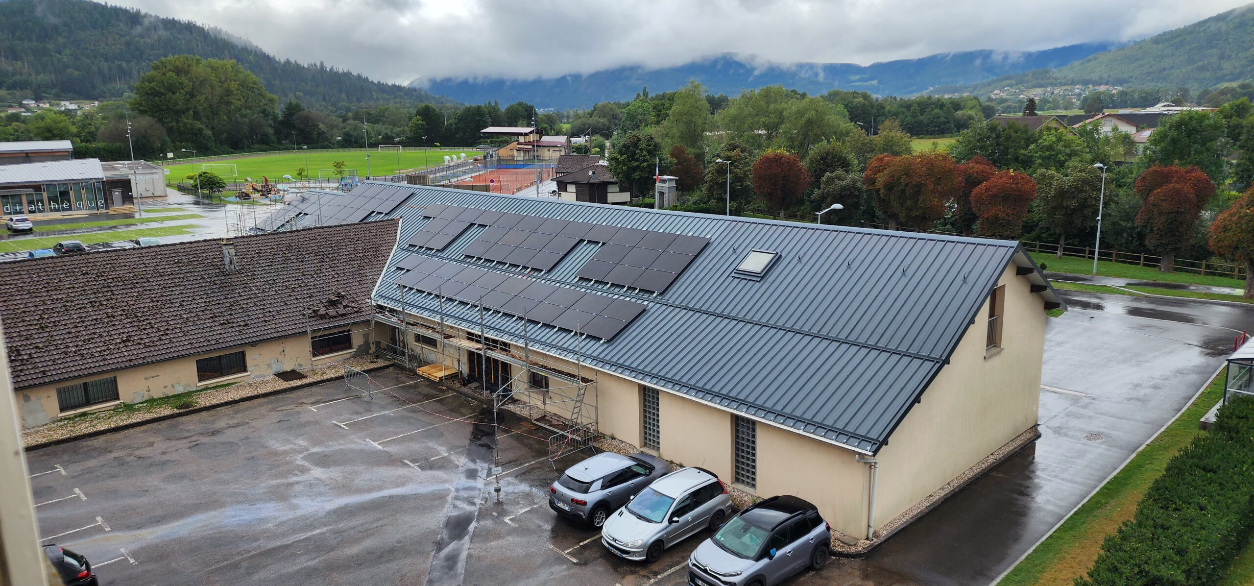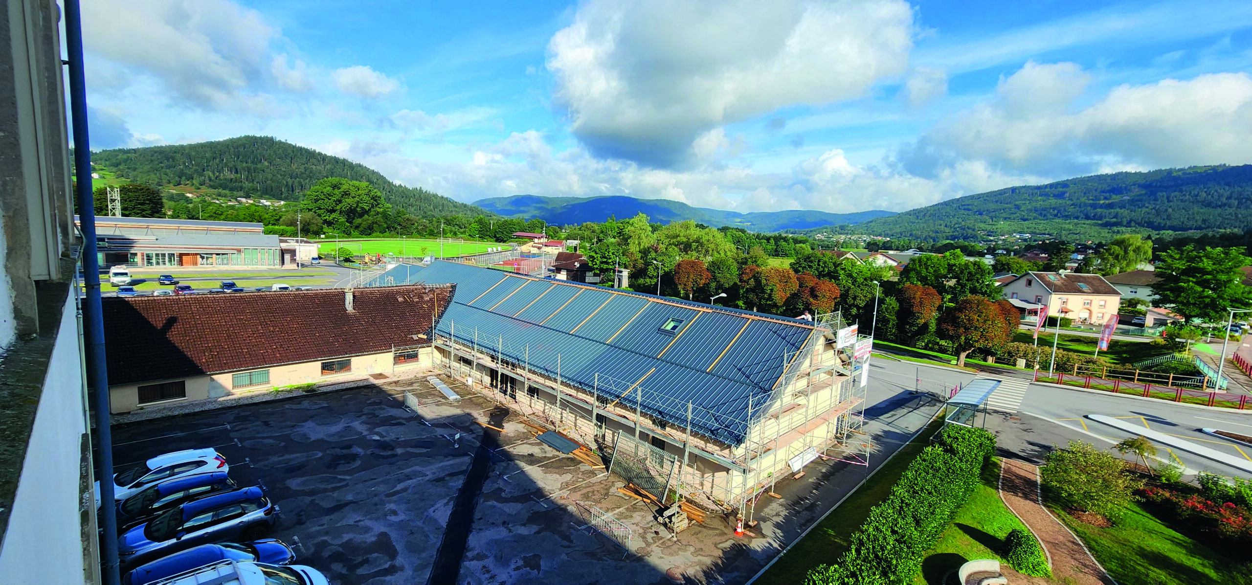 La rénovation de la toiture du bâtiment des Services Techniques est achevée. Ce projet comprenait trois étapes principales : le désamiantage de l’ancienne tour de séchage, réalisé par SDMI à Vagney ; la réfection de la charpente et de la couverture, assurée par TCZ de Thiéfosse, afin d’améliorer l’isolation ; et l’installation de panneaux photovoltaïques de 31,5 kWc, par la SARL Manens ELEC du Val d’Ajol. Ces panneaux produiront de l’électricité pour la Mairie, le surplus sera revendu à EDF.