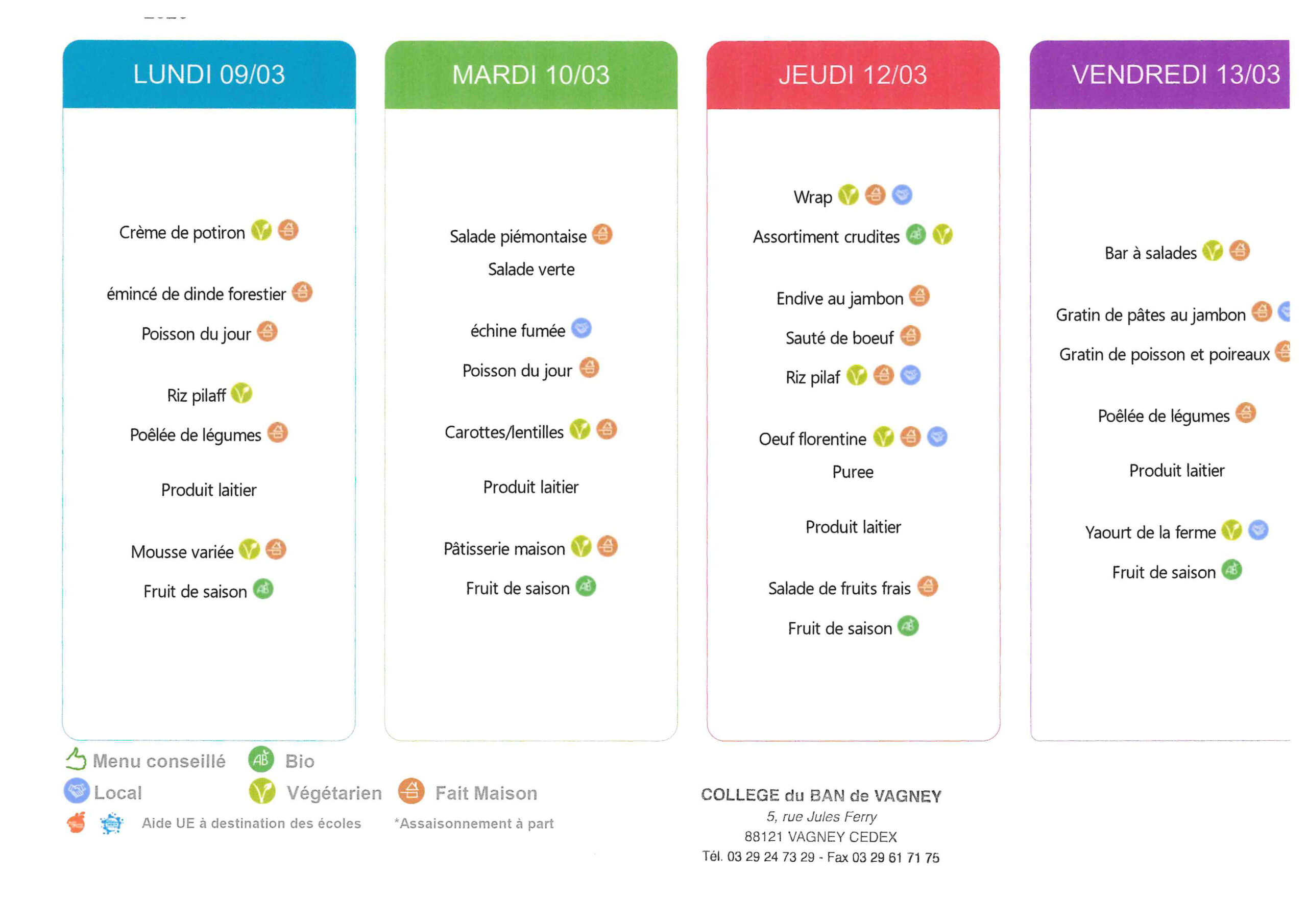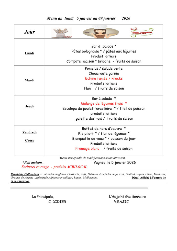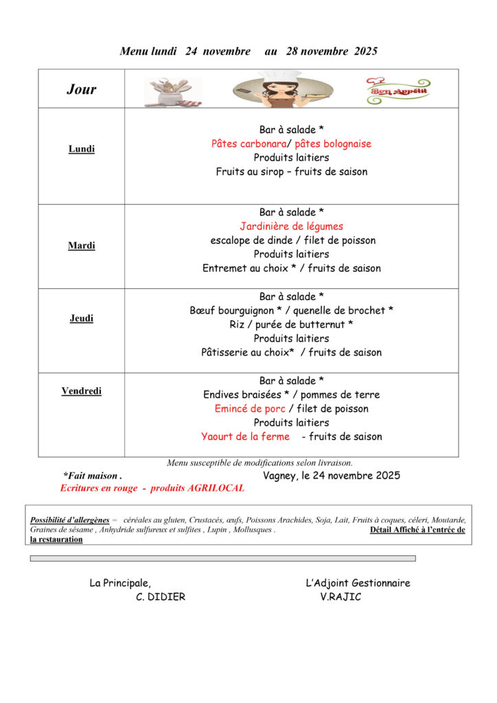 Les menus de la cantine