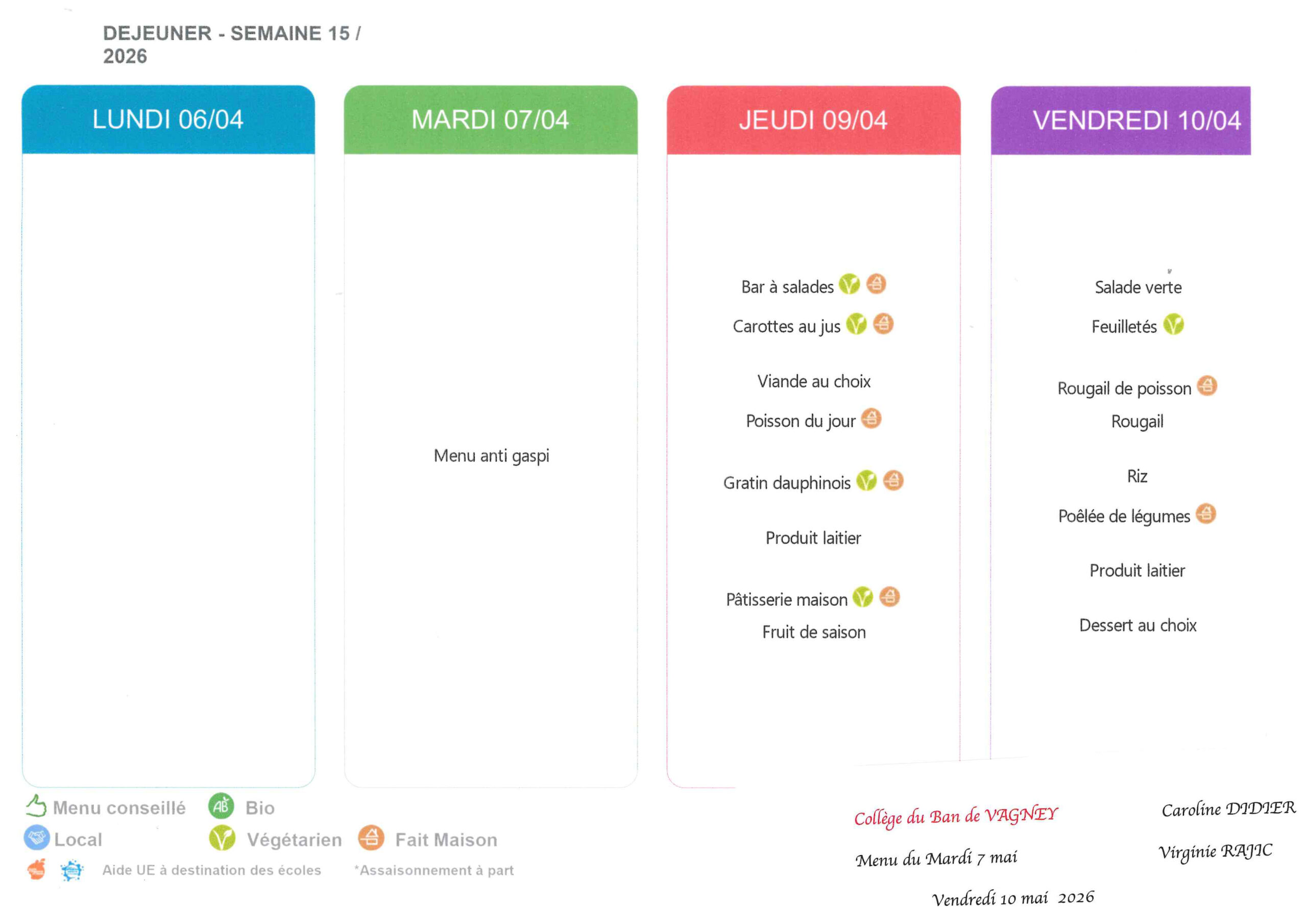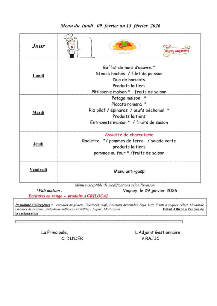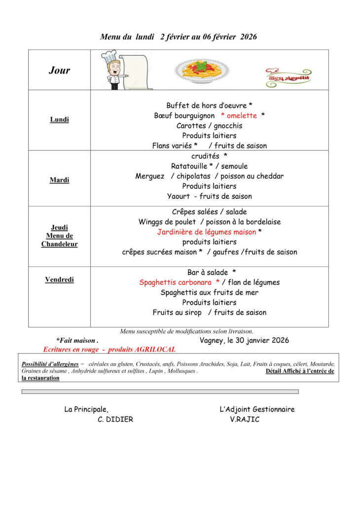 Les menus de la cantine​